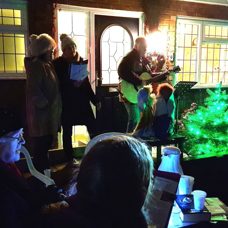 Wendy hosted carol singing outside her house, which was led by Kevin and Jo. A few neighbours braved the cold to sing, and share mince pies and mulled wine.