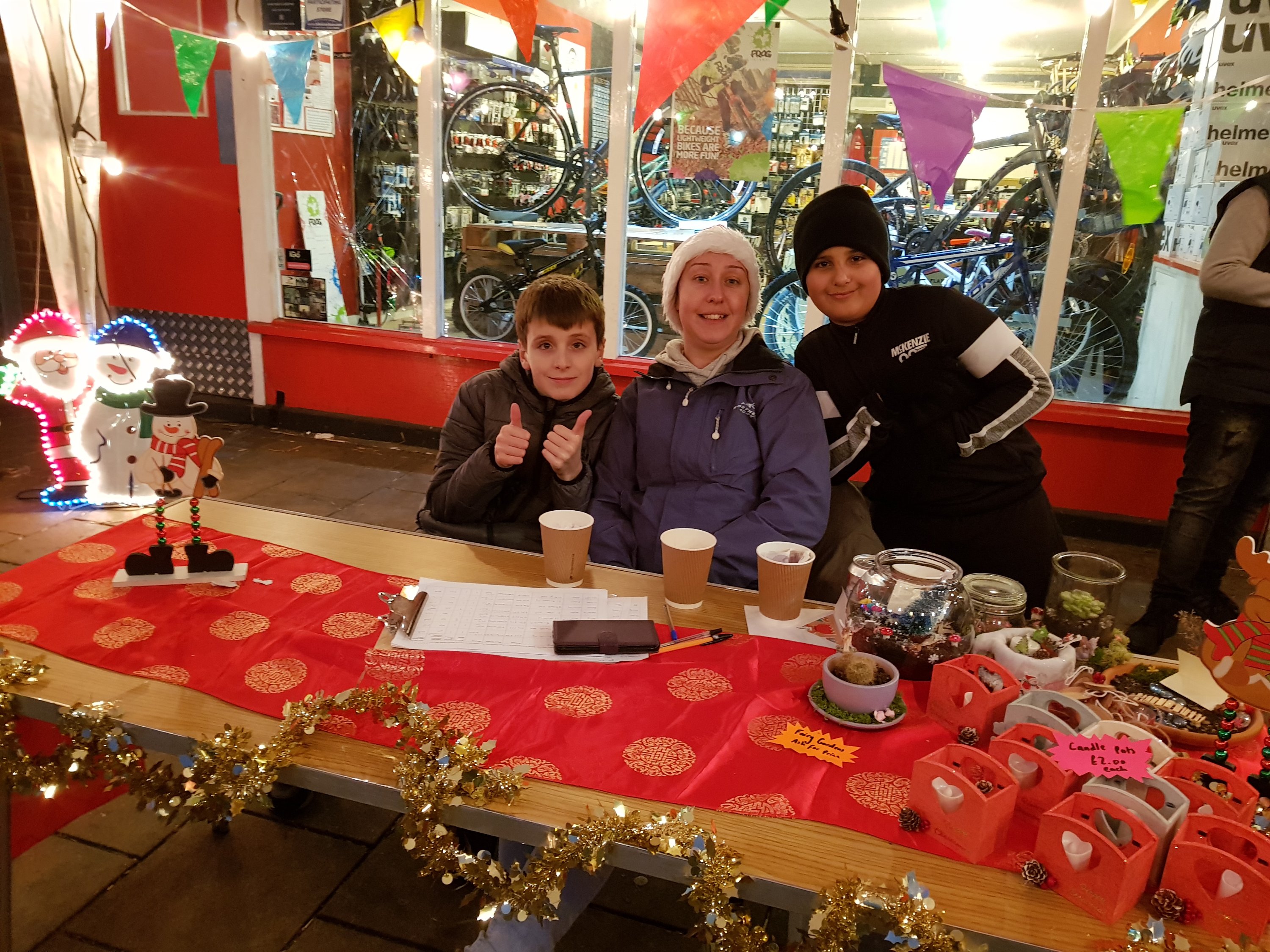 The social action crew supporting the Christmas Event outside the Hub